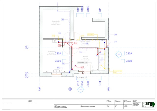 Mission de relevés de l’existant puis étude de synthèse des corps d’état architecturaux et technique pour la refonte complète des distributions plomberie et électricité dans cette maison existante élancée où de nombreuses sections existantes sont encore en plomb et où des travaux successifs ont entraîné des boucles, chicanes et détours à rationaliser.